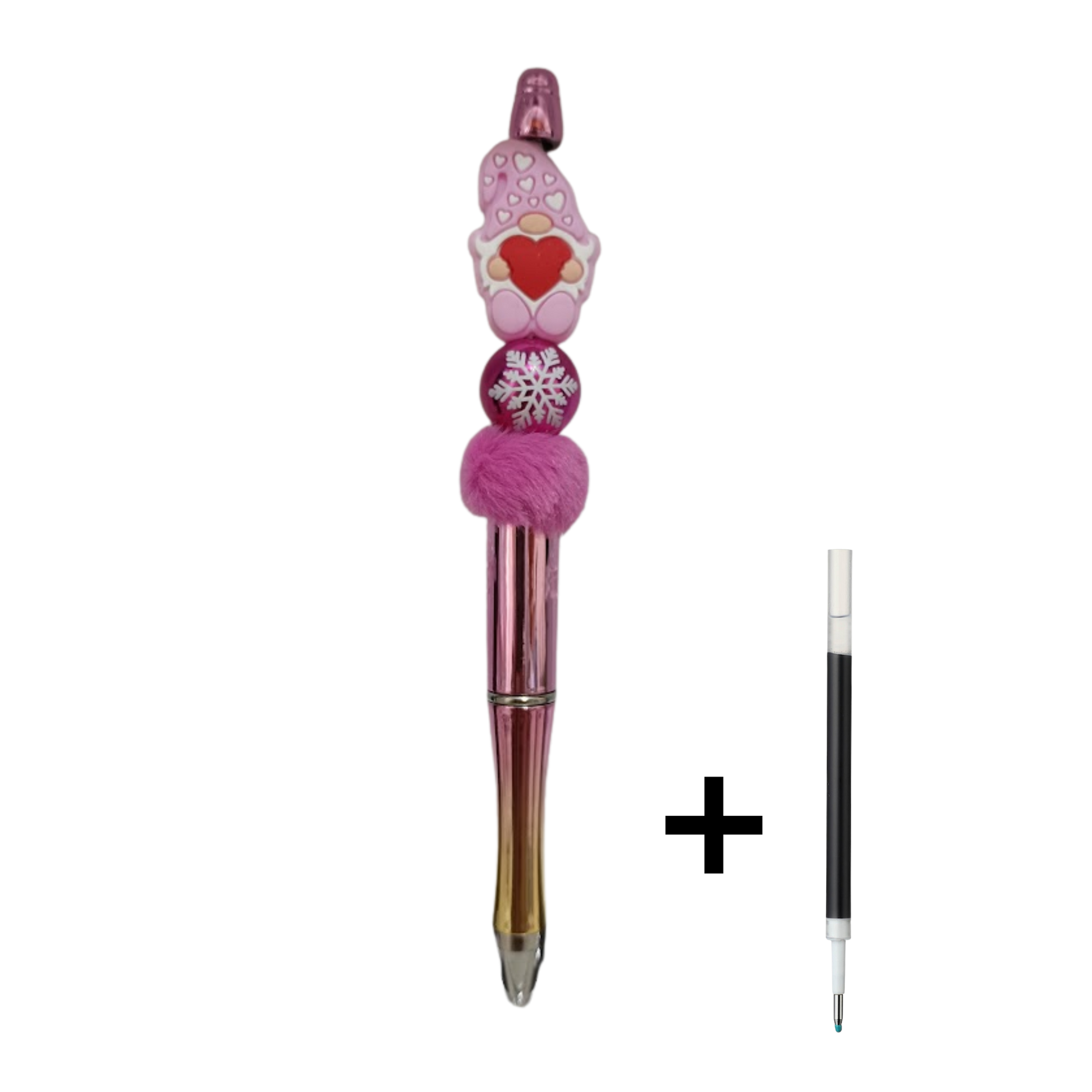 Penna con Gnomo in Rilievo, Palla di Neve e Pompon | Idea Regalo Artigianale