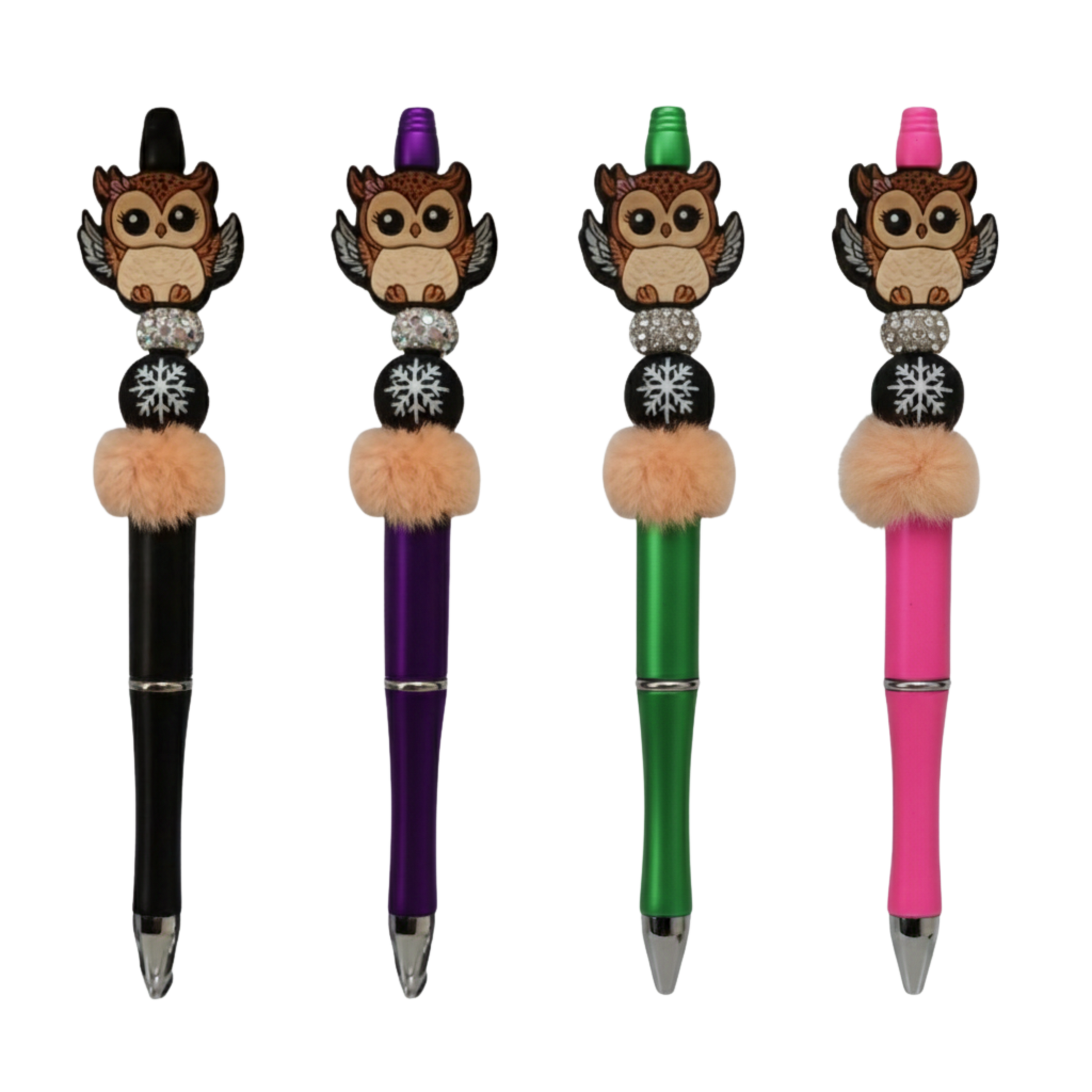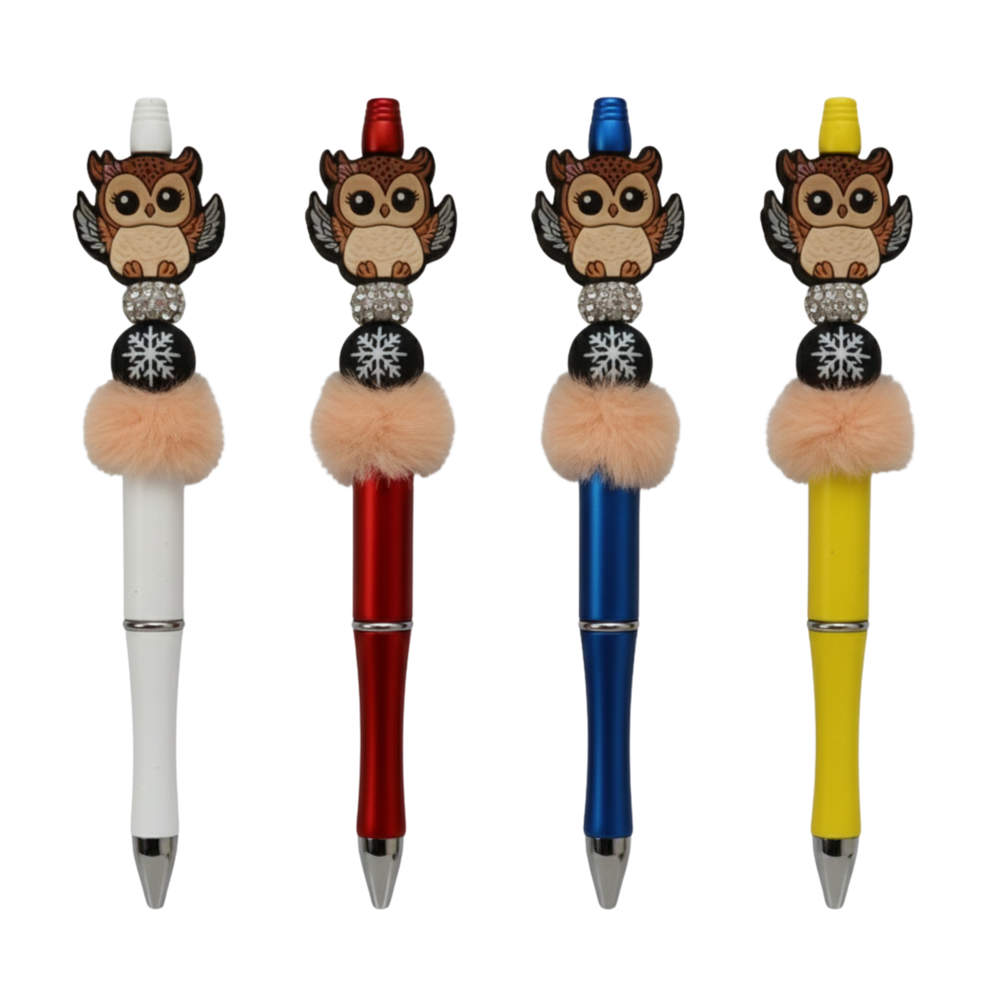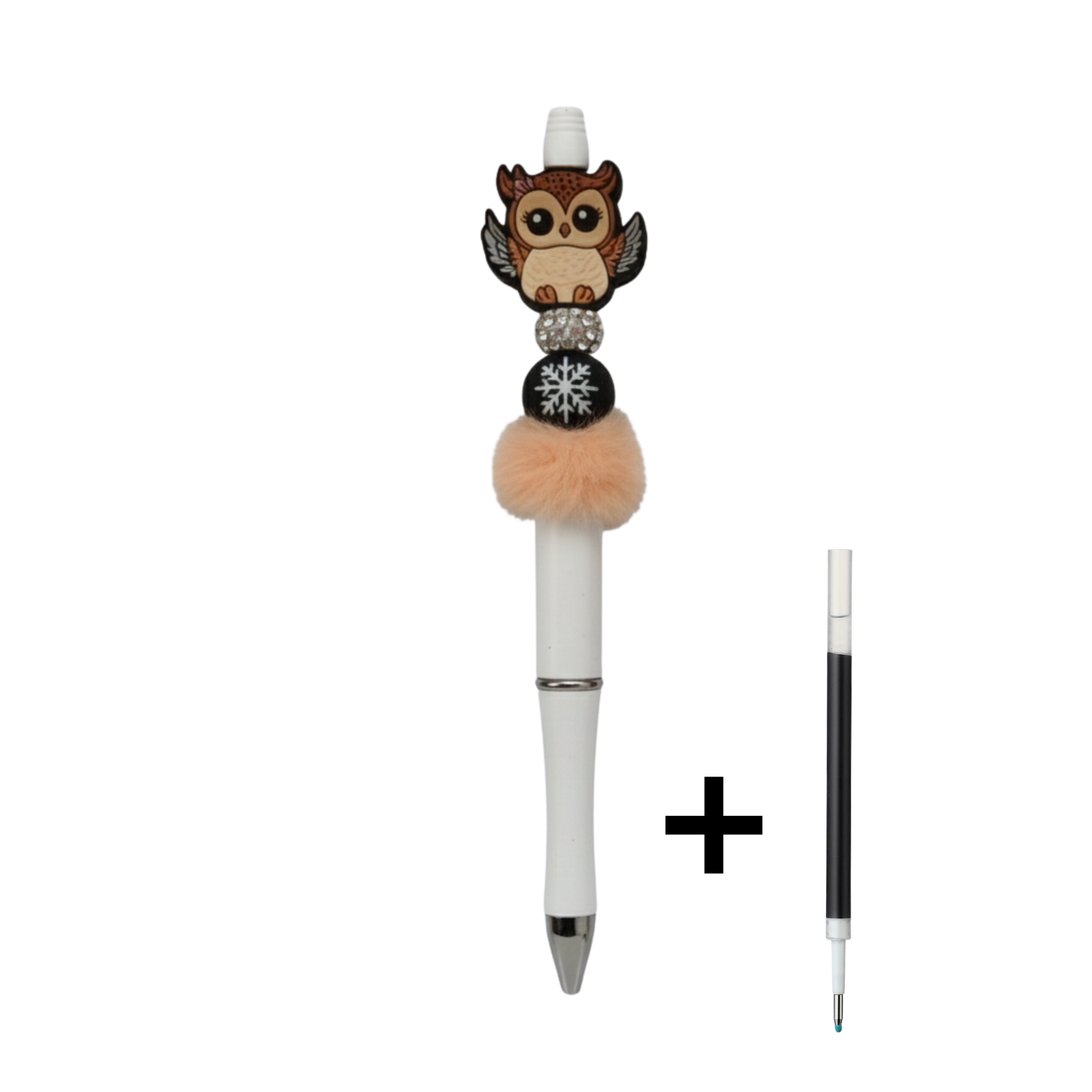 Penna con Gufo in Rilievo, Palla di Neve e Pompon | Idea Regalo Artigianale